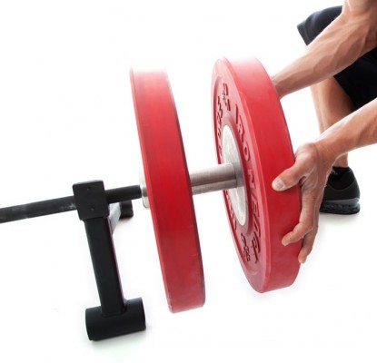 The Iron Edge Barbell Jack takes the hassle out of changing weight plates on a barbell sitting on the floor or platform.