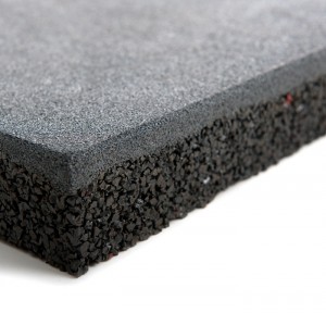 At 50mm thick, in 500x500mm tiles, the flooring is comprised of dual-density foam. The top layer is 10mm deep and provides a dense surface for supporting the lifter and the weight, while the 40mm beneath is a cushioning layer for both shock and sound absorption.