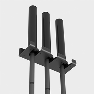 If you only have 1-3 bars on hand, our smallest option is the Barbell Storage – Wall Mount unit and the Barbell Storage – Iron Cage unit (suitable for use with an Iron Cage only), which can hold up to 3 bars at once. Similar to the Gun Rack, our speciality bars such as the Safety Squat Bar and Swiss Bar will not be compatible with these options due to the diameter of the shaft.