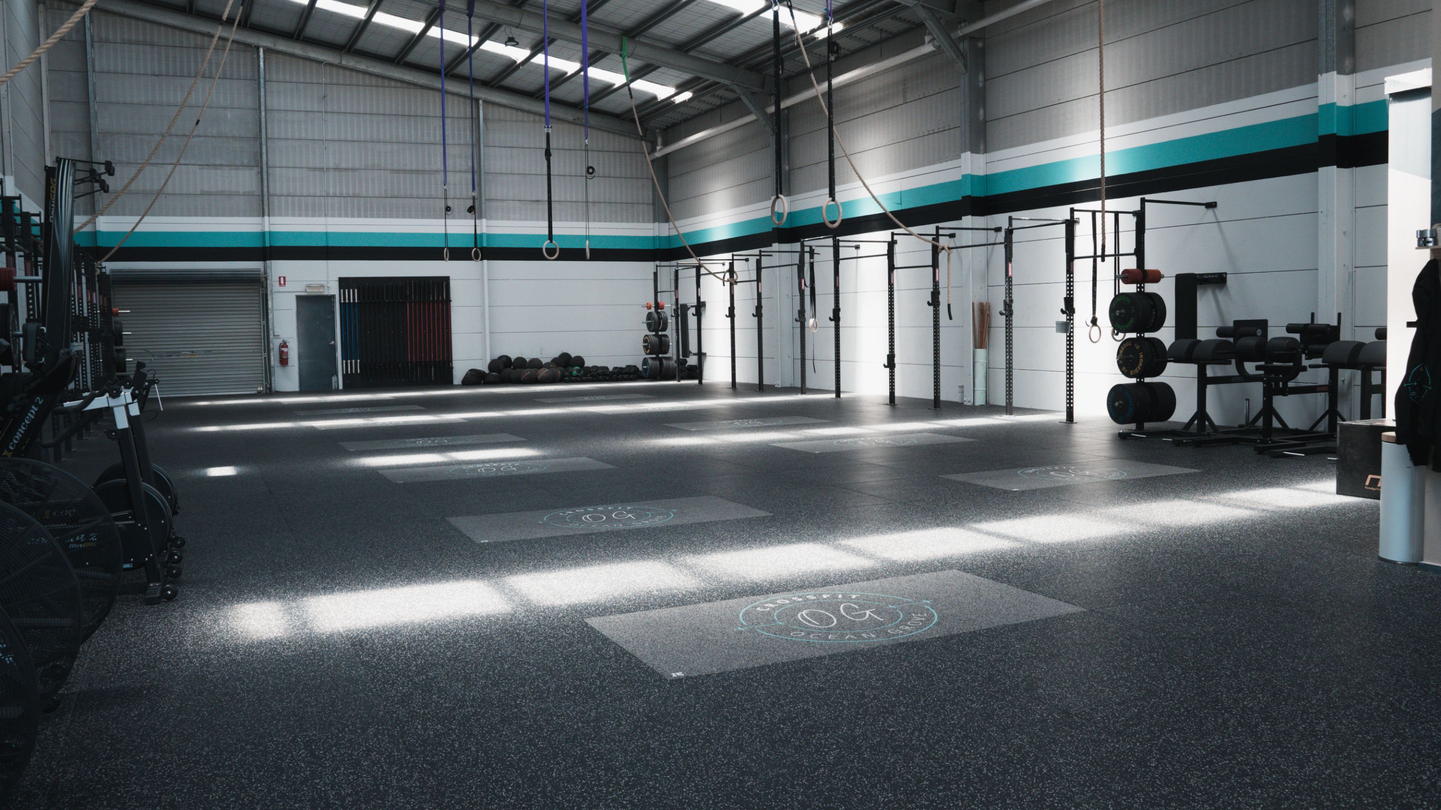 As a finishing touch, CrossFit Ocean Grove has added their logos to its floor via the inlay platforms for dedicated deadlifting areas.