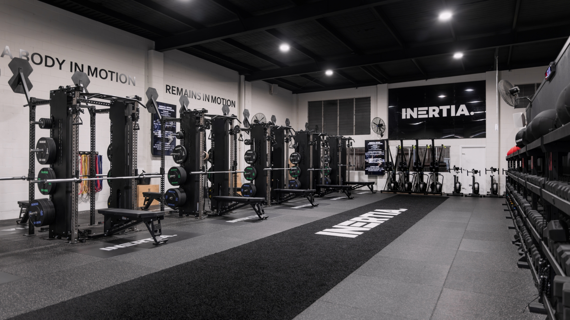 Iron Edge met Inertia Fitness's requirements with a focused fitout solution. The centerpiece was the Armour Rack system, which combines the utility of racks with the adaptability of integrated cable systems, catering to diverse strength training routines. For the flooring, Iron Edge installed React Turf and custom inlay platforms that align with Inertia Fitness's brand while offering durable and high-performance surfaces for workouts. These flooring solutions not only improved the gym's appearance but also its overall workout environment. This project highlighted Iron Edge's ability to deliver turn-key solutions that enhance performance in a brand-aligned space.