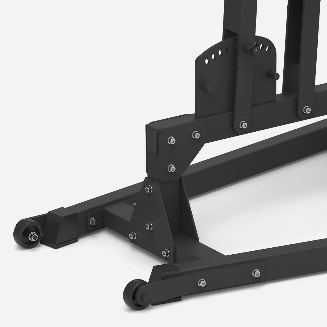 The distance and height of the foot plate can be adjusted using a pin-lock mechanism - similar to most pin loaded machines - in order to position yourself best for your preferred exercise and difficulty.